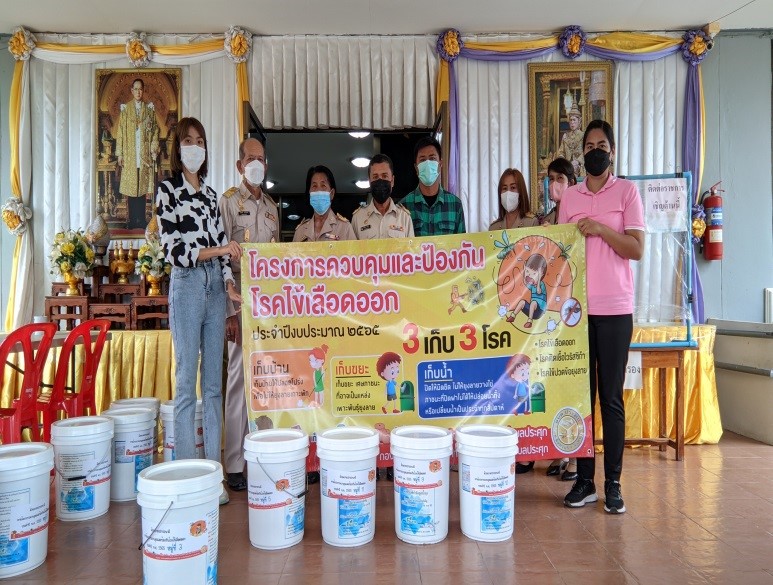 องค์การบริหารส่วนตำบลประศุก ได้มอบทรายอะเบท ตามโครงการโครงการควบคุมและป้องกันโรคไข้เลือดออก ประจำปีงบประมาณ พ.ศ. 2565